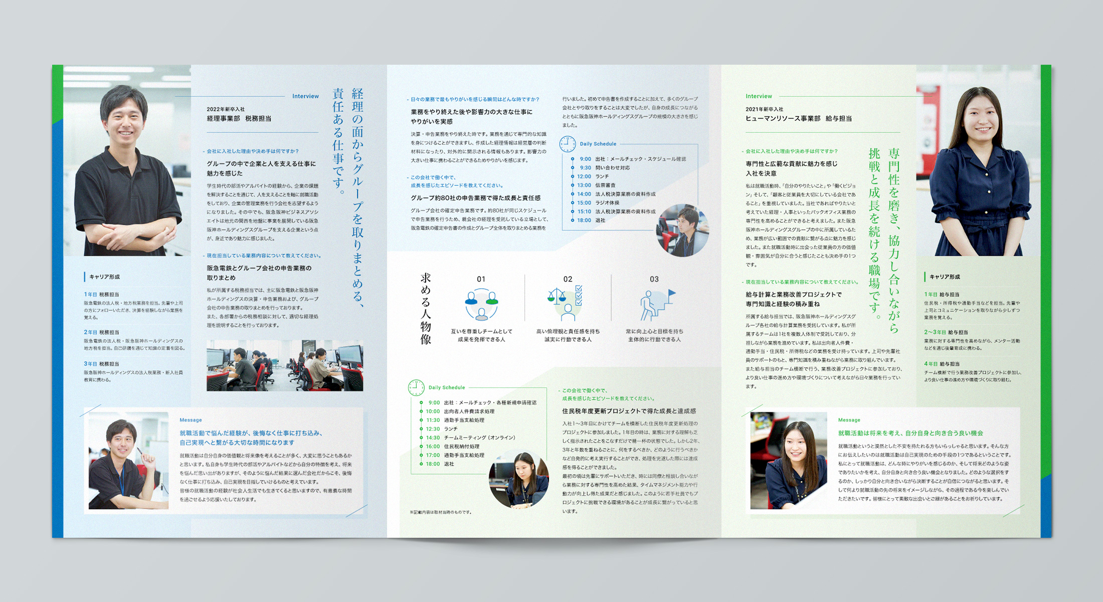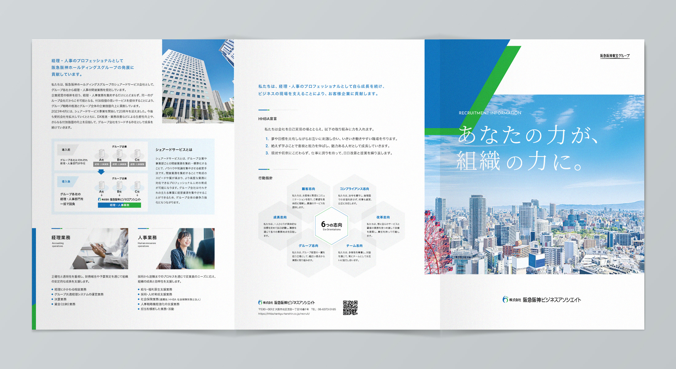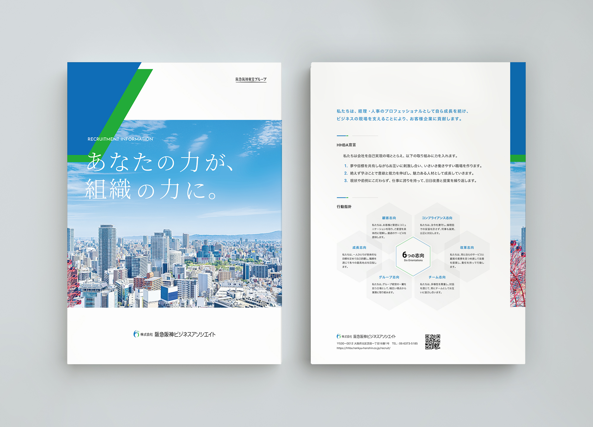 株式会社阪急阪神ビジネスアソシエイト様の会社案内パンフレット制作を担当させていただきました。ディレクション会社と協働し、Caramelではグラフィックデザインから印刷工程までを一貫して対応しています。 紙面では、同社の落ち着いた企業イメージを踏まえつつ、明瞭な情報整理と視認性の高いレイアウトを重視。上品な余白設計やコーポレートカラーを活かしたアクセント使いなど、読み手に負荷をかけない“整ったビジュアル”を目指しました。写真や図版の扱いも含め、ビジュアルのまとまりと信頼感を感じられるトーンで統一しています。 表紙から本文、紙質選定や色校正・仕上げ指示まで丁寧に設計し、企業の姿勢が伝わるパンフレットに仕上げました。